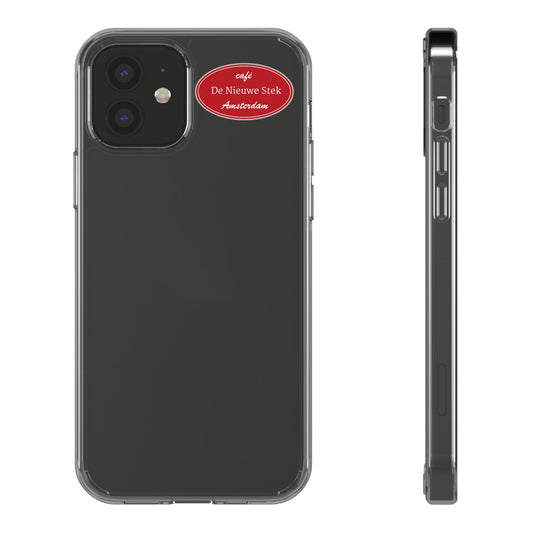 Cafe De Nieuwe Stek Amsterdam Oval Sticker — Red Vintage Café Logo Kiss-Cut Sticker
